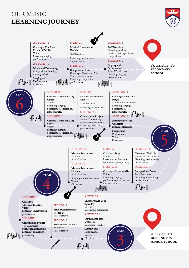 Music is highly valued at Burlington Junior School. It is approached with energy and enthusiasm by all. Through listening to, and engaging with, an extensive repertoire of music, children develop their understanding of music and its place in the wider world.